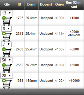 Silicon Wafers in stock from various manufacturers including opsil, ITME, and many more.