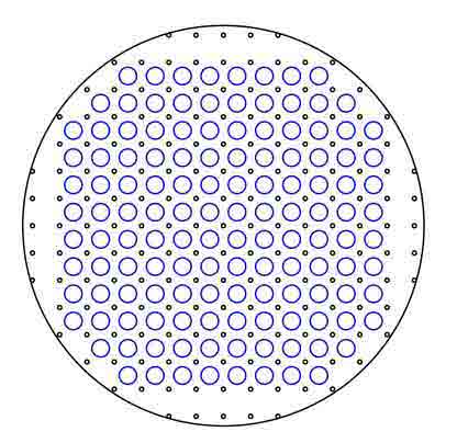 Mask: Diameter: 0.5...1.5 mm circular area (blue) coated with gold and with 3.3mm pitch between coated areas.