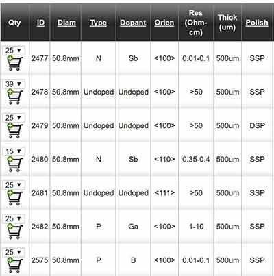 We have a large selection of Electrical and Optical Grade Germanium Single and double side polished wafers in stock and ready to ship.