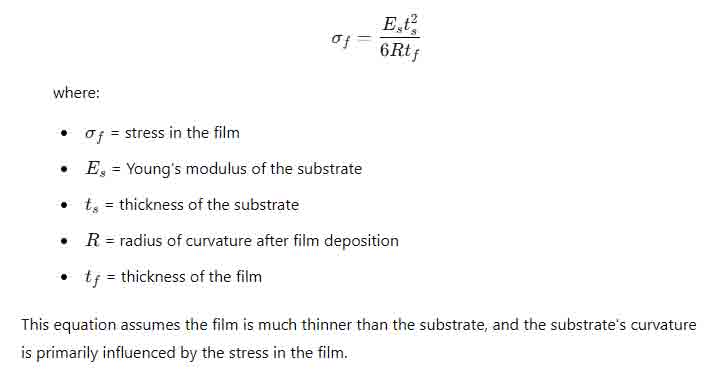 - This equation assumes the film is much thinner than the substrate, and the substrate's curvature is primarily influenced by the stress in the film.